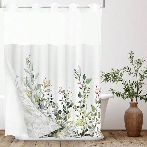 Liner Green Eucalyptus Leaves Shower Curtain, 72x72 Inch, Waterproof, See - Through Top, Hotel Luxury Double Layer