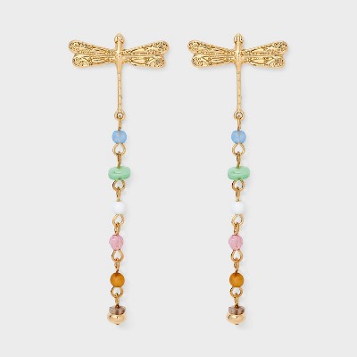 Dragonfly Drop Earrings - Universal Thread™ Gold/Pink
