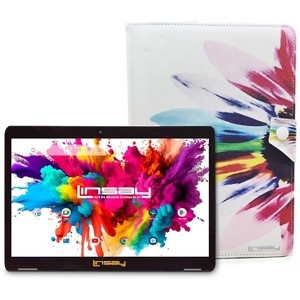 LINSAY 10.1" Octa Core 128GB Storage Android 15 Tablet with Rainbow Marble Case