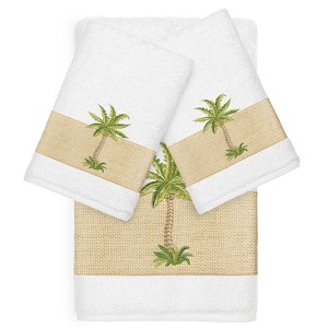 The COLTON Embellished Towel Collection features a regal palm tree motif on a textured woven border. These soft and luxurious towels are made of 100% premium Turkish Cotton and offer lasting absorbency and superior durability.