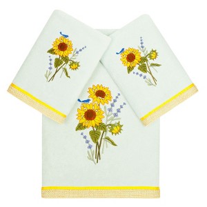 Create a mood of country charm in your bath with the GIRASOL Embellished Towel Collection. These towels feature an applique embroidered bouquet of vibrant sunflowers and lavender, highlighted by a bright bird perched on top. Cloud soft and super absorbent, these luxurious, durable towels keep their plush appearance after washing. This collection is available in 8 elegant colors: White, Beige, Blush, Aqua, Silver, Cocoa, Charcoal and Marine. The GIRASOL Towel Collection brings a natural spirit and richness to your home decor and makes a great gift!