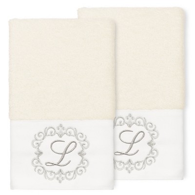 The Monica Embellished Towel Collection features an elegant metallic crest motif with your monogram embroidered on a crisp white border. These soft and luxurious towels are made of 100% premium Turkish Cotton and offer lasting absorbency and superior durability.