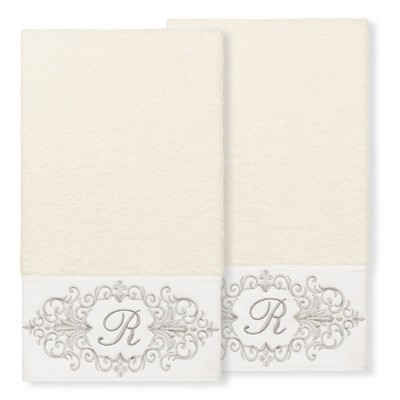 The Monica Embellished Towel Collection features an elegant metallic crest motif with your monogram embroidered on a crisp white border. These soft and luxurious towels are made of 100% premium Turkish Cotton and offer lasting absorbency and superior durability.