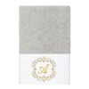 The Monica Embellished Towel Collection features an elegant metallic crest motif with your monogram embroidered on a crisp white border. These soft and luxurious towels are made of 100% premium Turkish Cotton and offer lasting absorbency and superior durability.
