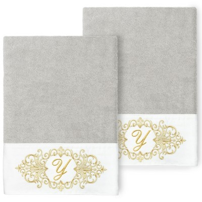 The Monica Embellished Towel Collection features an elegant metallic crest motif with your monogram embroidered on a crisp white border. These soft and luxurious towels are made of 100% premium Turkish Cotton and offer lasting absorbency and superior durability.