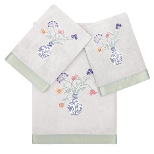 Your decorations are not complete without charming embroidered towels for the comfort of your family and guests. The STELLA towels feature lovely flower stems in an applique blue & white vase and are trimmed with a lustrous bengaline border. Cloud soft and super absorbent, these luxurious, durable towels keep their plush appearance after washing. This collection is available in 8 elegant colors: White, Beige, Blush, Aqua, Silver, Cocoa, Charcoal and Marine. The STELLA Towel Collection brings cottage spirit and richness to your home decor and makes a great gift!