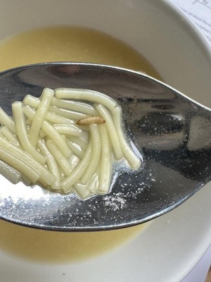 WORMS IN MY SOUP! I don’t know how world could possible get into these completely sealed envelopes. I made my soup and was about to walk into my dark theatre room but as I passed by my kitchen window I saw what I thought might have been maybe burnt noodles floating on top of my bowl. I had my son look with his glasses and he said omg mom those are worms. At first I thought maybe they could have been in the pot. But then when I picked up the envelope Sam’s looked inside, there was a little bit of soup powder and two worms leftover in the envelope. We had 8 boxes and I just threw them all away. Was gonna make a different soup but now I’ve completely lost my appetite :-(