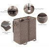 - The overall dimensions of the laundry basket are 23.6 inches x 13.8 inches x 25.6 inches, with a capacity of 68L per compartment and an overall capacity of 136L.