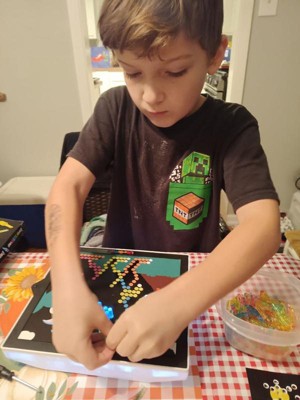 [This review was collected as part of a promotion.] I was so excited to get this for my kids to try, as it brought back memories of when I used it when I was young. I was the first to try, because, well I just couldn't help myself 😆. I am rating this a 4/5. This is because the batter compartment was very hard to unscrew. Along with that, it should be brighter, which my kids agree with. The stand is great, however the pegs are too difficult to stick in and it knocks over. It isn't sturdy enough. I do appreciate that it isn't heavy, but it seems a little bulky. Storage is pretty easy and convenient, as there's also a little baggie to keep the pegs in. There are definitely improvements to be made. My son who is 7 ended up giving up after being so close to finishing the picture. Overall though, my kids do enjoy this and it keeps them busy for a while.