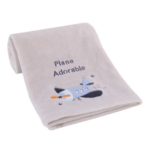 Little Love by NoJo Soar High Little One Gray and Light Blue Airplane Super Soft Baby Blanket