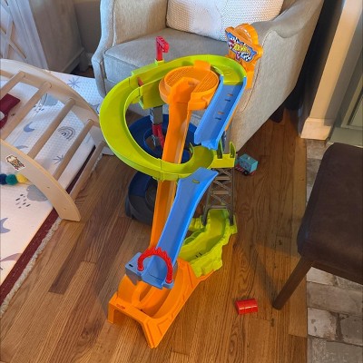 Fisher-Price Little People Hot Wheels Spiral Stunt Speedway Toddler Race Track Playset 2 Toy Cars