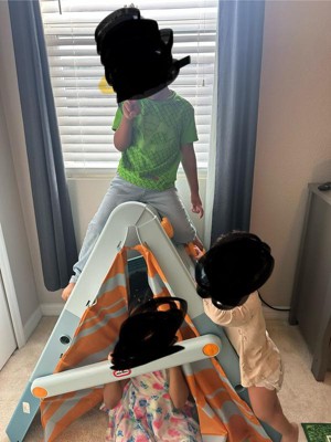 It looks like I am the outlier reviewer so far! This was extremely hard to put together. I have been in this parent game for 4 years now, and I have never been so challenged of putting something together. The climbing pegs are the hardest part, and you do need a power tool— it’s recommended, but it should say, “required”. Through the struggling and the cussing while putting this climbing camper together, I was thinking how this might be one of those toys that end up being recalled. This climber is not built with sturdy plastic. It isn’t the same as the Little Tike slide. I would advise every parent to place this on grass or carpet the first time your kid(s) try climbing this plastic triangle! Oh, and I loved the idea of this climber being able to be folded and stowed away. It was definitely a selling point for me. However, I have to take it apart each time! The struggle of putting this plastic camper climber together never ends! My kids have seen it, tried it, and love it, so unfortunately, this climbing camping plastic triangle is here to stay…