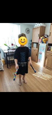 We had this set for one month before one of the juggling sticks shattered when my toddler was playing with it. The material breaks in such a way that there are jagged edges like glass and fragments all over the floor. Would not recommend for a kids toy.