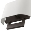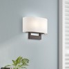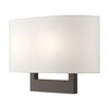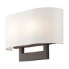 Material: Steel, Finish Color: Bronze, Width: 13", Height: 9", Depth: 3.95", Height From Outlet Box: 3.25", Backplate Width: 10", Backplate Length: 6", Lamping Type: Incandescent, Number Of Bulbs: 2, Wattage: 40 Watts, Moisture Rating: Dry Rated, Desc: Raise the style bar with a designer medium ADA sconce in a handsome and versatile contemporary manner. This two light wall sconce comes in an antique brass finish with a rectangular off-white fabric hardback shade.,
