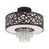Collection: Allendale, Material: Steel, Finish Color: Polished Chrome, Width: 12.88", Height: 10.4", Lamping Type: Incandescent, Number Of Bulbs: 2, Wattage: 60 Watts, Moisture Rating: Dry Rated, Desc: This spectacular bronze two light semi flush mount will take your home decor to the next level. Inspired by a bird nest, the laser-cut metal sheath surrounds an oatmeal fabric hardback shade with strands glistening of clear crystal. Canopy Included: Yes / Shade Included: Yes / Canopy Diameter: 4.75. ,