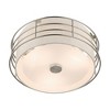 Collection: Blanchard, Material: Steel, Finish Color: Brushed Nickel, Width: 15", Height: 8.75", Lamping Type: Incandescent, Number Of Bulbs: 3, Wattage: 60 Watts, Moisture Rating: Dry Rated, Desc: The Blanchard semi-flush mount adds refined style and a hint of mystery to your d�cor. The antique brass finish and an oatmeal handcrafted hardback shade create warm illumination, while soft light brings to life the intricate fretwork pattern. This medium three-light semi flush mount will add a sophisticated and glamorous look to almost any interior design style. It will work great in the living room, hallway, over the dining or kitchen table and the bedroom.,