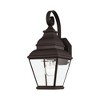 Collection: Exeter, Material: Brass, Finish Color: Bronze, Width: 6.5", Height: 15.5", Depth: 8", Height From Outlet Box: 7.75", Backplate Width: 4.75", Backplate Length: 5.5", Lamping Type: Incandescent, Number Of Bulbs: 1, Wattage: 100 Watts, Moisture Rating: Dry Rated, Desc: Finished in antique brass with clear beveled glass, this outdoor wall lantern offers plenty of stylish illumination for your home's exterior.,