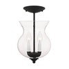 Collection: Heritage, Material: Steel, Finish Color: Black, Width: 8.25", Height: 14", Hanging Method: Chain, Chain Length: 36", Lamping Type: Incandescent, Number Of Bulbs: 2, Wattage: 120 Watts, Moisture Rating: Dry Rated, Desc: The Legacy collection offers a chic update to traditional style lighting. This pendant/semi-flush mount light design comes in a beautiful black finish with a traditional glass bell jar adding style.,