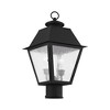 Collection: Mansfield, Material: Brass, Finish Color: Black, Width: 9", Height: 16.5", Length: 9", Lamping Type: Incandescent, Number Of Bulbs: 2, Wattage: 60 Watts, Moisture Rating: Dry Rated, Desc: With stunning seeded glass and a charcoal finish, this outdoor post lantern will make an elegant addition to any outdoor space. Formed from solid brass & traditionally-inspired, this outdoor post lantern is perfect for a driveway, back porch or entry way. Shade Included: Yes. ,