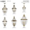 Collection: Monterey, Material: Brass, Finish Color: Antique Brass, Width: 8.5", Height: 12.75", Chain Length: 24", Lamping Type: Incandescent, Number Of Bulbs: 1, Wattage: 100 Watts, Moisture Rating: Dry Rated, Desc: The Monterey outdoor lighting features clean, crisp lines complemented by the graceful curves of beveled glass. Crafted from sturdy solid brass this handsome colonial styling makes this fixture a perfect addition to your outdoor spaces. Canopy Included: Yes / Shade Included: Yes / Canopy Diameter: 5.00. ,
