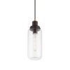 Collection: Oakhurst, Material: Steel, Finish Color: Bronze/Antique Brass, Width: 5", Height: 19.5", Hanging Method: Cord, Lamping Type: Incandescent, Number Of Bulbs: 1, Wattage: 75 Watts, Moisture Rating: Dry Rated, Desc: Filament style bulbs are showcased in simple shaped hand-blown clear glass and add to the authentic charm of this industrial style pendant.,