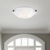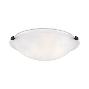 Collection: Oasis, Material: Steel, Finish Color: Bronze, Width: 16.5", Height: 4", Hanging Method: Flush, Lamping Type: Incandescent, Number Of Bulbs: 3, Wattage: 60 Watts, Moisture Rating: Dry Rated, Desc: In a brushed nickel finish paired with white alabaster glass, this sleek flush mount will complement your transitional decor with its clean, stylish look. Shade Included: Yes. ,