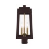 Collection: Oslo, Material: Brass, Finish Color: Bronze, Width: 8.25", Height: 20.38", Length: 8.25", Lamping Type: Incandescent, Number Of Bulbs: 3, Wattage: 60 Watts, Moisture Rating: Dry Rated, Desc: This updated industrial design comes in a tapering solid brass black frame with a sleek, straight-lined look. Clear glass panels offer a full view of the brushed nickel accents, that will house the bulb of your choice. Shade Included: Yes. ,