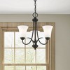 Collection: Ridgedale, Material: Steel, Finish Color: Black, Width: 18", Height: 17.5", Hanging Method: Chain, Lamping Type: Incandescent, Number Of Bulbs: 3, Wattage: 300 Watts, Moisture Rating: Dry Rated, Desc: Bring a simple, yet eye-catching style into your home with this lovely chandelier. The geometric design will add interest to kitchens and breakfast nooks alike. Painted in a black finish, this design will bring light for years to come. Canopy Included: Yes / Shade Included: Yes / Canopy Diameter: 5.00. ,
