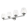Collection: Willow, Material: Steel, Finish Color: Polished Chrome, Width: 35.5", Height: 9.5", Depth: 6.5", Height From Outlet Box: 7.13", Backplate Width: 4.75", Backplate Length: 0.75", Lamping Type: Incandescent, Number Of Bulbs: 4, Wattage: 60 Watts, Moisture Rating: Dry Rated, Desc: This four light vanity sconce from the willow collection has understated elegance. It features minimal details, clear curved glass with a polished chrome finish and can fit into any decor.,
