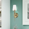 Collection: Witten, Material: Steel, Finish Color: Antique Brass, Width: 4.25", Height: 14.5", Depth: 3.95", Height From Outlet Box: 9.25", Backplate Width: 4.25", Lamping Type: Incandescent, Number Of Bulbs: 1, Wattage: 60 Watts, Dimmable: No, Moisture Rating: Dry Rated, Desc: A contemporary sconce with a brushed nickel finish, the Witten features an opal white glass shade which takes it to another level of sophistication. Shade Included: Yes. ,