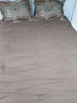[This review was collected as part of a promotion.] I own the Galleria for peace Brown comforter set. It is absolutely exceptionally, impressively designed. I absolutely love the look, the colors, the heaviness of this comforter set. I love the luxurious tones that make it all come together in this fabrication. Love the exceptional lavish patchwork, Jacquard in the neutral pallets with aqua accents. In the comforter set it has a combination of a paisley, damask diamond and lattice motifs that are woven in a chenille and metallic Yarns they feel so incredibly soft and it's just truly impressive. On the bed skirt it also features a woven Jacquard medallion with a pleated added dimension to give your comforter set a complete stunning look. The comforter itself is definitely heavy. What I absolutely love about this whole thing is the turfing button like is throughout the whole comforter set so that way all of that feeling doesn't move. The inside of the filling has 8 oz virgin fiber with 2 inch Loft. The quality and the value of this comforter set is absolutely exceptional. I love how it has that embroidered piping Patchwork throughout the whole incredible design. I love that it's neutral colors and the feel is so soft, cozy and warm. I had a friend of mine over she absolutely fell in love with the stunningness, the look, the feel, the weight, and she brought two of them for herself. I would absolutely most definitely recommend this. I thank you for this amazing opportunity. #tryit.