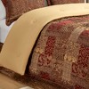 [This review was collected as part of a promotion.] Croscill Classics - Galleria 4 Piece Red Comforter Set. Gives you magical carpet vibes. The patch and quilt work reminded me of how some of the carpets look for a Disney movie. It also looks like the carpets that rock stars put down when they have like a jam session. It is a Comforter NOT a carpet but I absolutely love it all the same. It has very intriguing and intricate patterns and I love the two strand twisted rope that goes all along the edges of the comforter. It keeps me nice and cozy during cool spring nights and warm when I have the Air conditioner on during the afternoons. It comes with a bed skirt and two pillow cases that match the red, brown and gold color scheme.