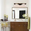 Product Name: LNC Lapps 28-in 4-Lights Matte Black and Distrssed Brown Wood Tone Seeded Glass Farmhouse Vanity Lights