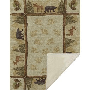 Transform your space into a cozy retreat with this oversized 50″ x 70″ lodge-style throw blanket featuring bears, moose, trees, and pinecones woven into a rustic wildlife scene. The nature-inspired design adds warmth and character to cabins, living rooms, and bedrooms alike.Made from 100% polyester microfiber, the luxuriously soft-touch front offers a smooth, inviting feel, while the plush backing enhances warmth and comfort. Measuring 50″ x 70″ (4′2″ x 5′10″), this rectangular throw provides generous coverage for sofas, accent chairs, or layered bedding.Fade-resistant and machine washable, it is suitable for indoor and covered outdoor settings. Final crafting is completed in the USA using domestic processing on an imported substrate. Machine wash gentle, tumble dry low. Includes a 30-day limited manufacturer warranty.