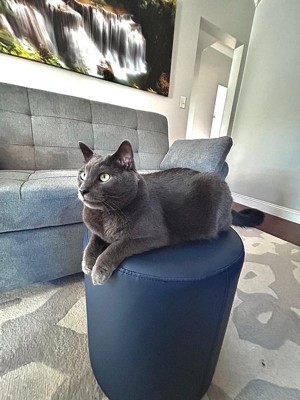 [This review was collected as part of a promotion.] Regency’s Logan Round Stool Ottoman in Naval Blue is great for small spaces because it doubles as both seating and a side table. It’s light enough to easily move from room to room, and the construction is sturdy. The top is both firm yet comfortable to sit on for long periods of time, and stable enough to rest your beverage on. The surface is durable and easy to wipe down if you have kids or pets. If I could change one thing, I wish it opened up so that it could also be used for storage. Great for home or office!