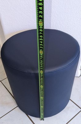 [This review was collected as part of a promotion.] Much bigger than I was expecting, but also better quality. This is a real piece of furniture and it is flawless. It is a full sized ottoman or seat. The vegan leather is a beautiful saturated navy blue, and the stitching is perfect.