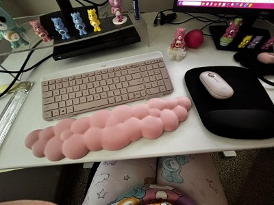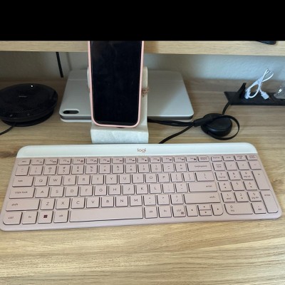 This keyboard is great- very comfortable and quiet keys. Also, it's a very pretty muted pink color. I would recommend it!