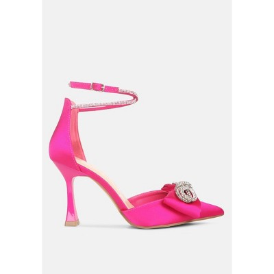 You can never go wrong with a classic pair of kitten-heel sandals! The buttery-smooth satin heels with a gorgeous bow embellishment are all things pretty and nice! These are a must-have for days when you want your shoes to do the talking for you, basically every day. Type: Sandals Upper Material: Satin Outer Sole: Rubber Closed Pointed Toe Kitten Heels Bow Embellishment Detail Slingback Style Comfortable Cushion Insoles Easy To Wear Heel Height: 2 inches SH4861