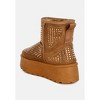 Introducing our chunky ankle boots where warmth meets rhinestone sparkle. Featuring stylish panelling, comfortable 2-inch flatform heels, and soft cushioned insoles, these boots feel like walking on clouds with a hint of shine. Theyre perfect for lounging at home, running errands, or when out and about on a lazy day. Type: Ankle Boots Upper Material: Microfiber Outer Sole: Synthetic Closed Round Toe Chunky Flatform Heel Anti-Skid Sole Rhinestone Embellishments Elevating Paneling Detail Heel Height: 2 inches SH4884