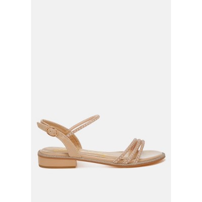 Nobbity Rhinestone Pearl Detail Flat Sandals