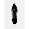 The stud lady! Croc Textured Faux Leather Bootie in lace-up style has an easy to wear zipper fastening on the in-side. The stylish stiletto boots has sturdy and shiny heels that is all ready to make heads turn!