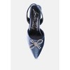 Crafted with supreme construction, this pair of delicate velvet stiletto heeled mules is a true standout. They feature a decorative diamante bow brooch on top, adding drama to the shoe. These closed pointed-toe slingback sandals are trendy and comfortable, thanks to the light cushion insole.