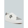 Elevate your sneaker game with these chunky star sneakers with a glitter patch vamp and a metallic counter, giving the sneakers an eclectic unique look. The sneakers give a secure and comfortable fit with the lace up design and comfortable cushion insole. Type: Sneakers Upper Material: Glitter + Faux Leather Outer Sole: TPR Closed Round Toe Chunky Flatforms Star Patchwork Glitter Patch Metallic Counter Lace Up Style Comfortable Cushion Insole Heel Height: 1 inch SH4987