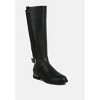The dual tones are definitely an intriguing element of the heeled boots and the belt embellishment with the buckle detail is an interesting element that elevates the overall look of the boots. The boots have a low heel and soft cushion insole which makes them comfortable to wear. Upper Material: Faux Leather Lining Material: Faux Leather Outer sole: TPR Closed Round Toe Knee High Boots Side Zipper Opening Almond Toe Metallic Buckle Belt Embellishment Autumn/Winter Wear SH2555