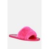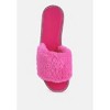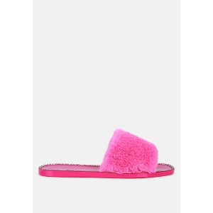 Faux Fur Shearling Strap Slider Flats with diamante detail studs add to the look on the feet. Super soft on heels and looks good on rainy days, dries quickly. Upper Material: TPV/Shearling Fur Lining Material: TPV Outer sole: TPV Open Toe Grooves Outsole Diamante Details Casual Rainy Flats SH3195