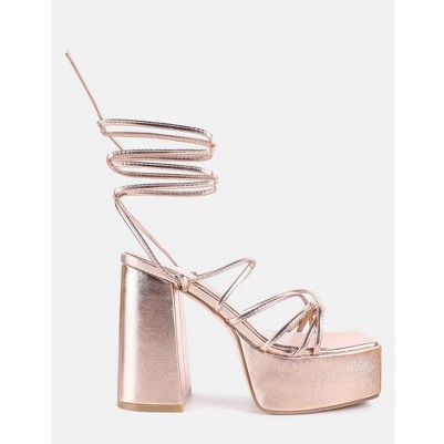 Product Name: Anvil Metallic Block Heeled Lace Up Sandals