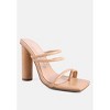 • A: These sandals feature a toe ring detail, dual strap design, and cylindrical block heels.
