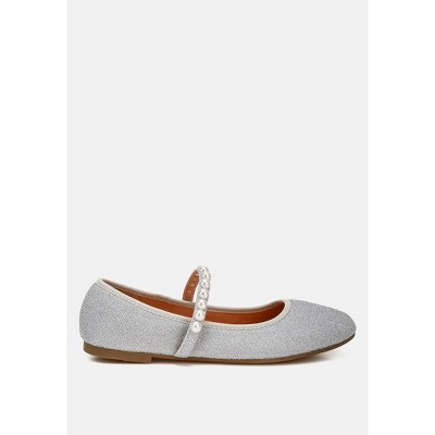 Crafted with glitter and embellished with pearls, these ballerinas feature a closed round toe, giving the shoes a classic take. Complete with a flexible sole and comfortable cushioned insole, they're designed to effortlessly accompany you on any adventure.  Type: Ballerinas Upper Material: Glitter Outer Sole: Synthetic Closed Round Toe Flat Heel Heel Height: 0.5 cm/01.9 inches Pearl Embellishment Strap Detail Flexible Sole SH4913