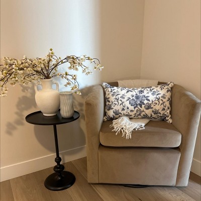 This table has such a cute shape and was just the right size I needed to sit in a corner of or dining room and hold a vase. It’s also sturdy without being too heavy to move around. It did unfortunately come a bit scuffed on the edge of the table, (assuming from the shipping process), but I just put that side to the wall. Fits great with a variety of decor styles; from modern transitional to farmhouse to traditional.