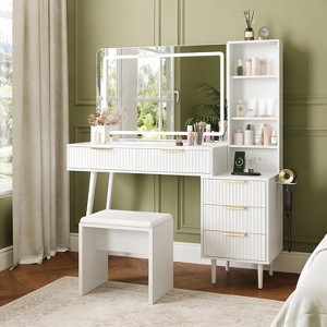 48" Makeup Vanity Desk Set with 36" LED Mirror, 5 Drawers & Shelves, Adjustable Lights with Charging Station for Bedroom